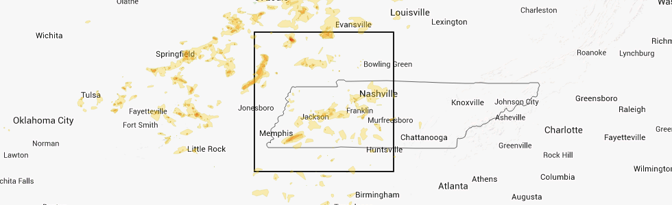 Regional Hail Map for Mc Kenzie, TN - Friday, May 16, 2025