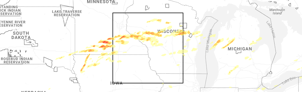 Quickly spot concentrations of wind damage being reported.